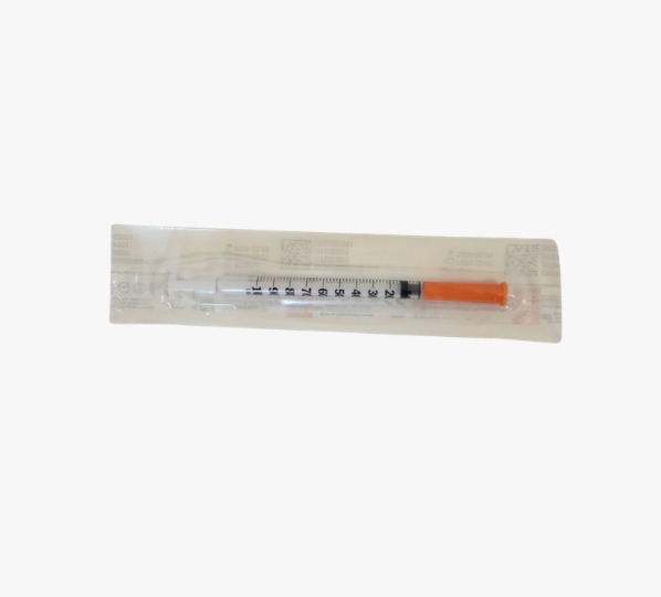 A Micro-Fine, fixed needle 1ml syringe from BD, providing a safe and simple way to administer medication to diabetic patients.